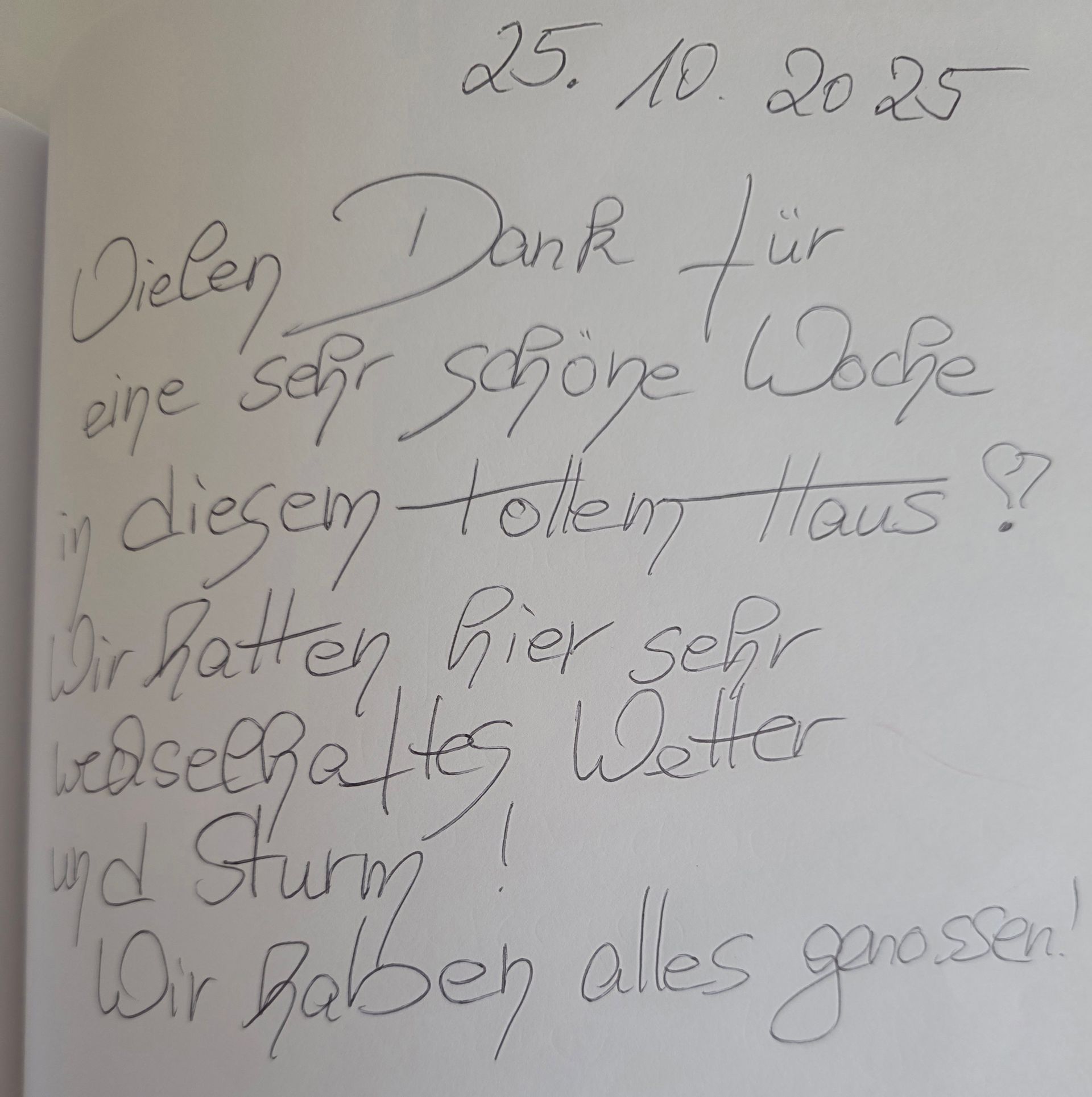 Und wer weiß – vielleicht hinterlässt auch Du eines Tages Deine Erlebnisse, Gedanken oder einen Gruß aus Deinem Urlaub im Reetdachhaus.